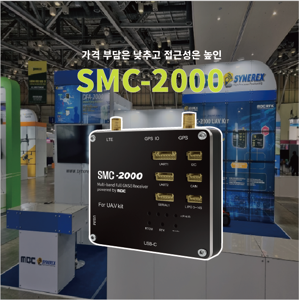 이번 드론쇼를 성황리에 마무리 짓게 해준 SMC-2000은 고가의 RTK GPS의 가격 부담을 낮춤으로써 접근성을 높인 제품입니다. 낮아진 가격에 비해 정확도는 동일하고 LTE 라우터 기능 등 부가기능이 추가되었습니다.